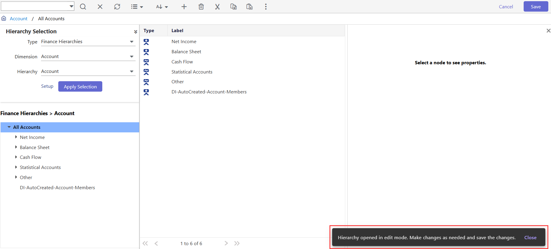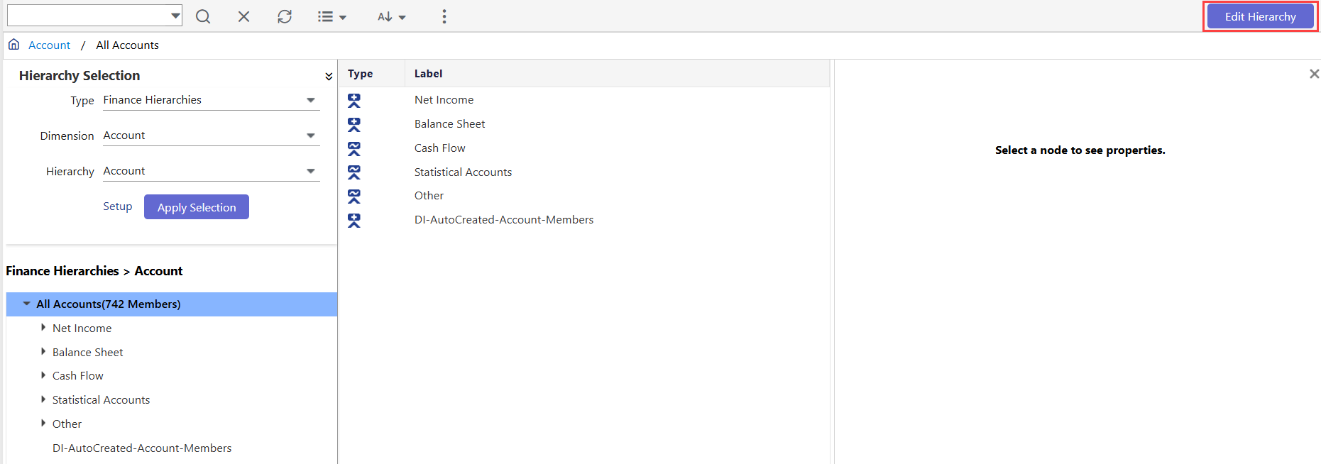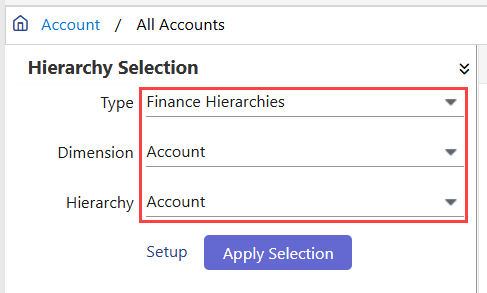 Select Type as Finance Hierarchies.