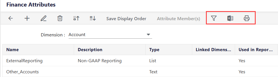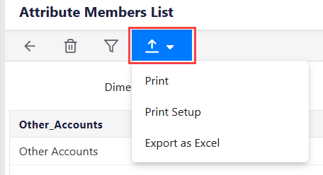 Filter and Export: To apply filter and narrow down the search results using the Filter option and to export the Attribute Members List to Excel for printing, viewing, or reporting purposes.